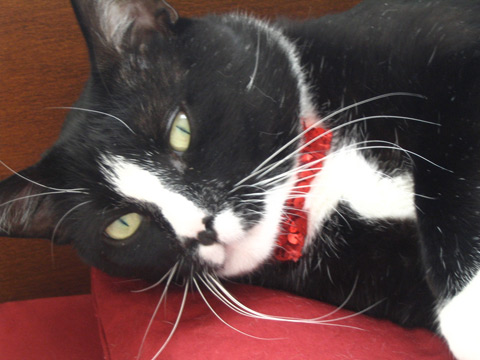 This past weekend I threw an Anniversary Party celebrating my first year in Portland. It was important to me that my cat, Face, outdressed all my guests, and thus I had to make him a sequined bowtie. Ideally the sequins would have been silver or black to match his coat, but red was my only option;…