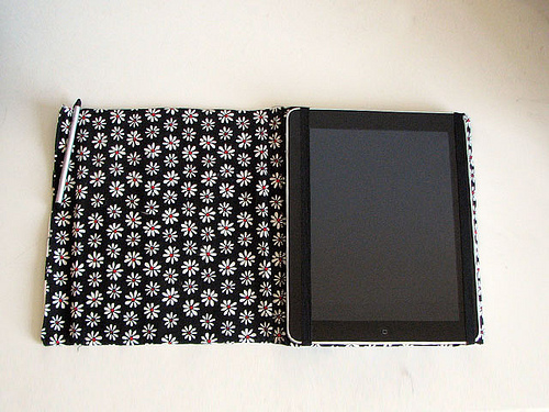 I was really excited to make a case for my iPad. This is a prototype of sorts. I knew I wanted it to be portfolio style rather than sleeve style and it was just a matter of determining how to keep the iPad in place. Inside is made of very rigid cardstock for structure and an old yoga mat for…
