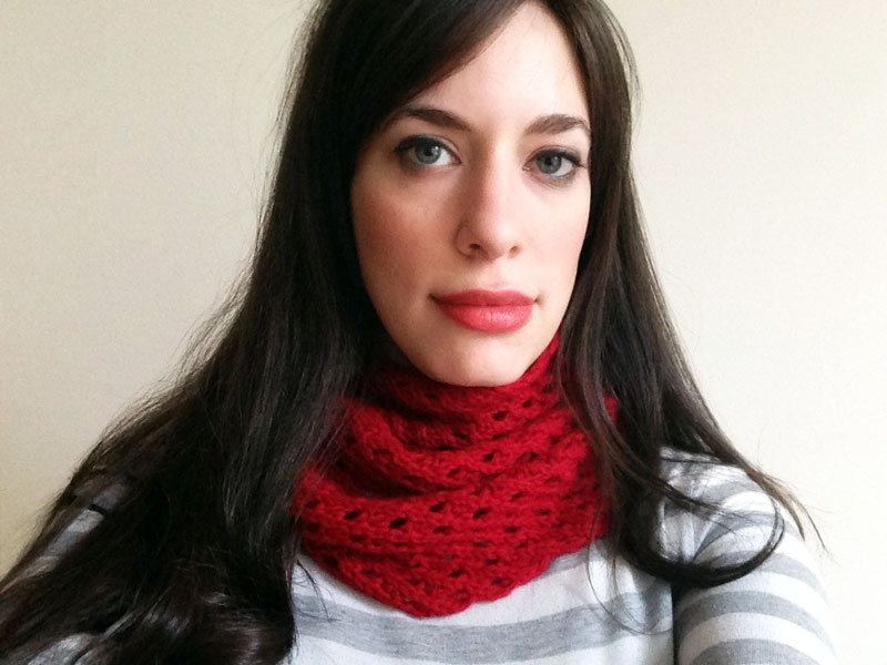 Cowls. They’re everywhere, right? Here’s a cowl of mine I’d like to share: The Bethesda Cowl. The pattern incorporates elements of lace and cabling and is very simple. I’m not sure if anyone has designed anything like this before, so forgive me if it’s been done! Skip…