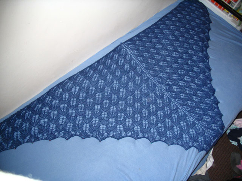 This is the Kiri Shawl! I only screwed up one leaf and it was my first major lace project. I weighed down the shawl points with pink beads and gifted this shawl to my friend Ruchi. Every woman must have a lace shawl I knit another in Kid Silk Haze for my mother for her wedding. She did not wear it…