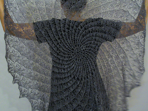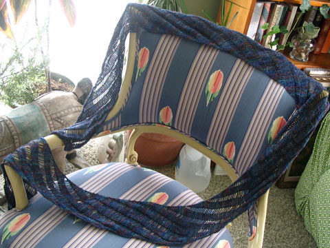 THIS is the Print O the Wave Stole by Eunny Jang. I’ve been meaning to knit this in Malabrigo Lace since 2006. In fact, I did knit it in the late spring of 2007, (in the Marine colorway of Malabrigo Lace) but after I grafted the two center panels together, it was too tight and it ripped. When…