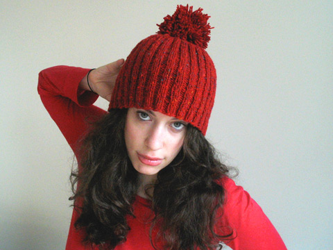 The pattern for this hat was easy; modifying it to get the perfect fit took effort. I saw this pattern in the fall Knitty but it didn’t register until I saw Cirilia’s version and I was blown away by the hotness. In the first trial I knit it flat on size 11s because 11 straights were the…