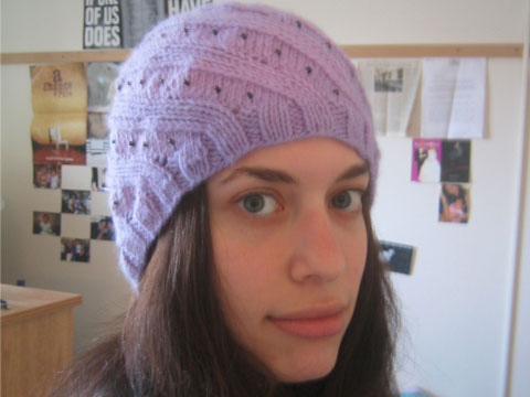 Hello! this hat is the Odessa hat, but knit as a slouchy beret. I don’t think I’ve ever seen it knit as a slouchy hat, but I’ve also never looked. This is the hat I recognize the most in Portland, albeit without the beads, which I can’t understand. The beads are the best…